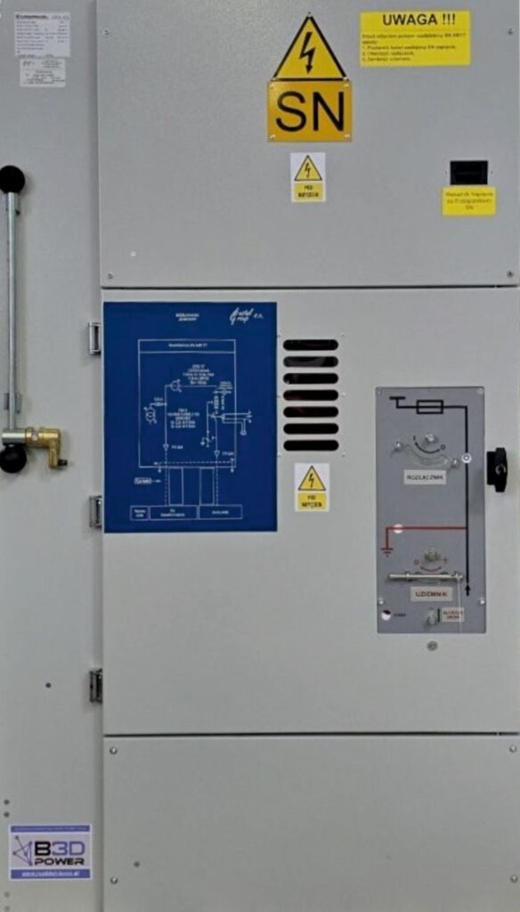 • Wnętrzowy, trójpołożeniowy (ON-OFF-UZIEMIENIE), trójbiegunowy rozłącznik z bezpiecznikami, typu THVR 17, 17,5kV-630/400A-20kA.